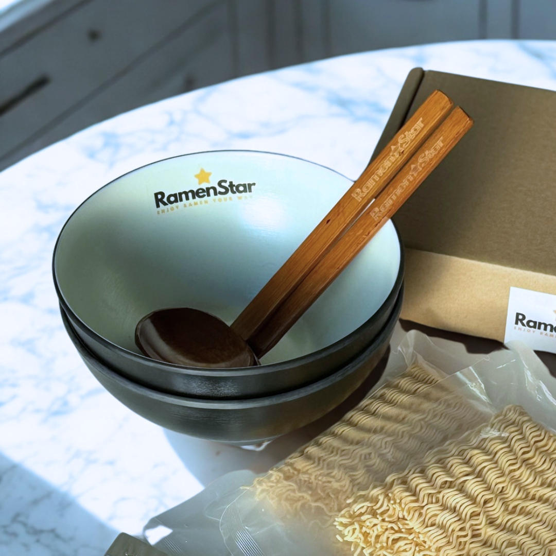 Our starter sets include fresh ramen noodles, high-quality broths, two bowls, RamenStar chopsticks (these are only available in the set) and spoons – everything you need for a simple and delicious ramen experience.